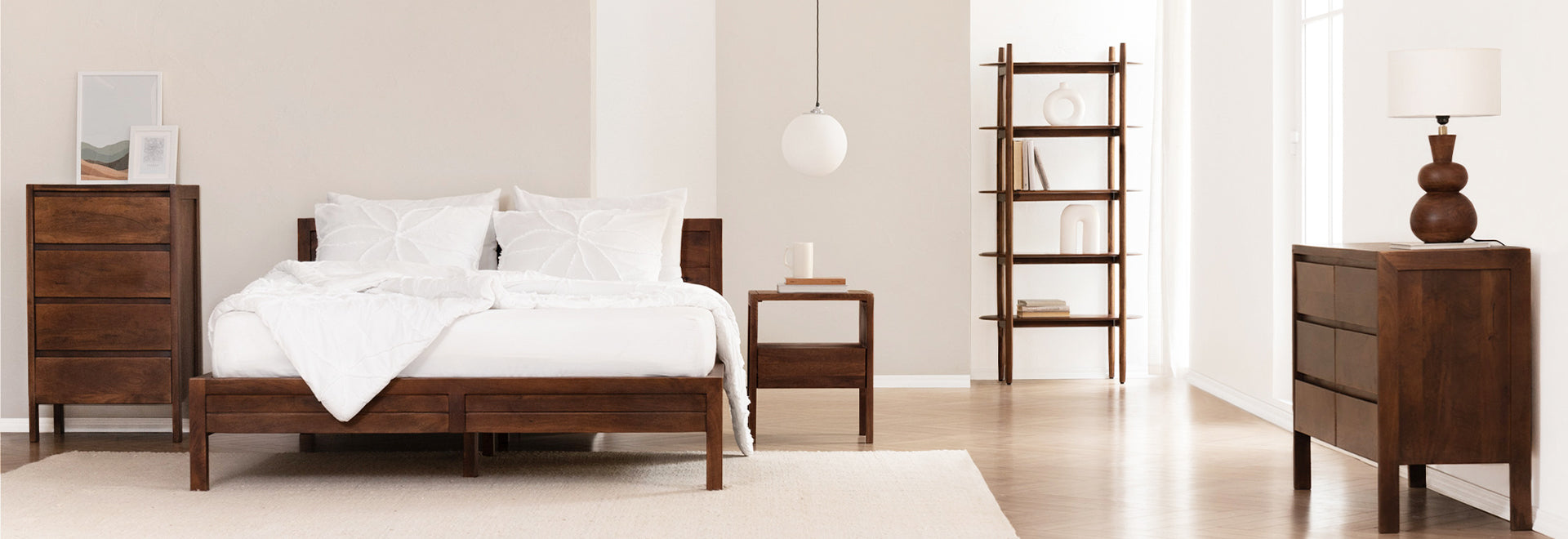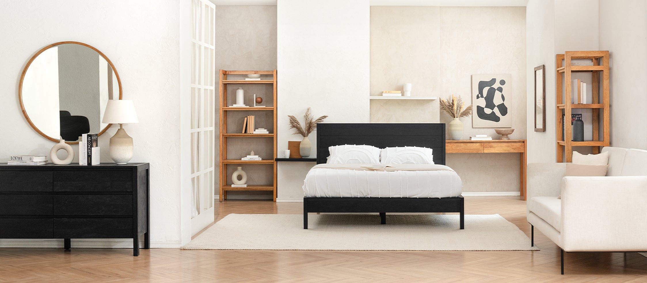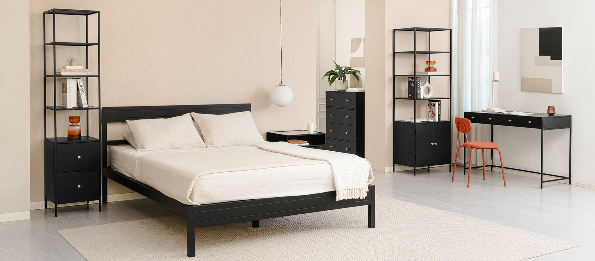 Tectural details and Scandi tones create a stunning collection that compliments your bedroom space