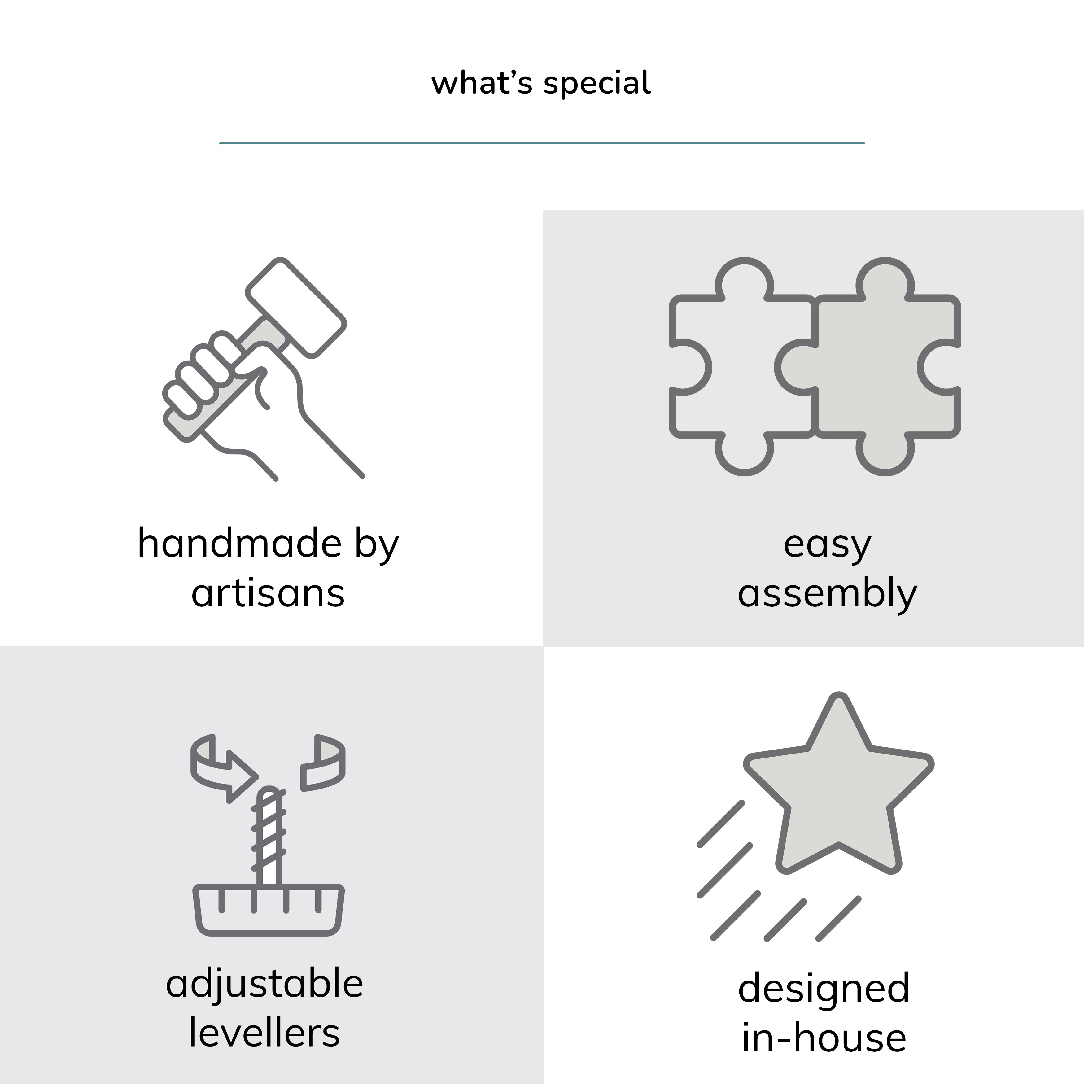 Contemporary design combined with minimal aesthetics, this coffee table is crafted using Kiln-dried solid wood. Slat design adorning the legs & sides, this piece makes for a stylish addition to your space. When assembled, the tabletop merges with the legs giving a clean and seamless look. Perfect for your everyday gatherings, set down your morning coffee, magazines, or favourite centerpieces.