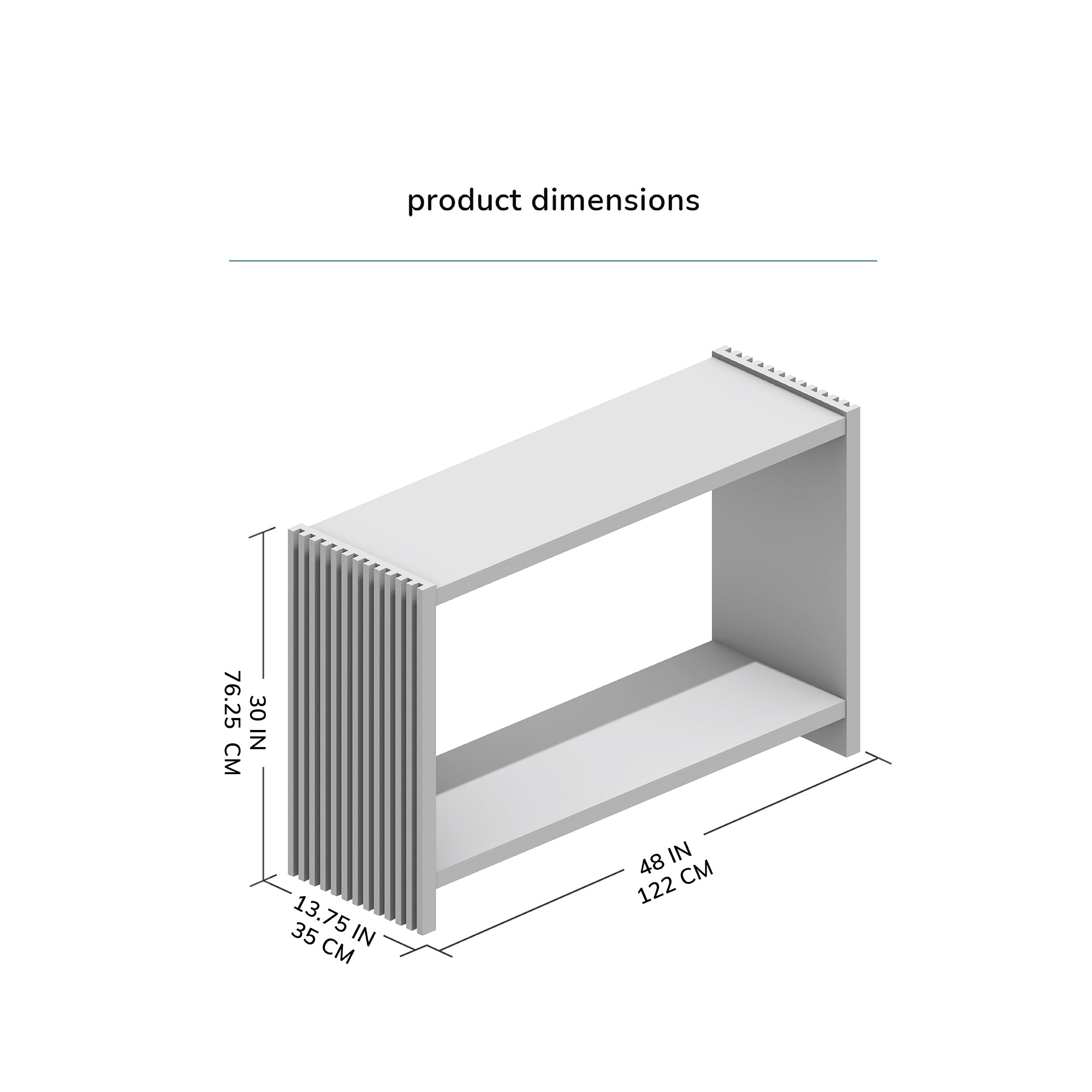 Showcasing fine craftsmanship, this console table brings mid-century modern charm to your interiors. Crafted using kiln-dried solid wood, it features vertically fluted detailing along the side panels, adding texture and visual interest to the streamlined form. The rectangular top and shelf offers generous space for styling decor, books and everyday essentials. Designed for long-lasting durability, it fits perfectly in your entryways, living rooms, hallways or behind sofas.