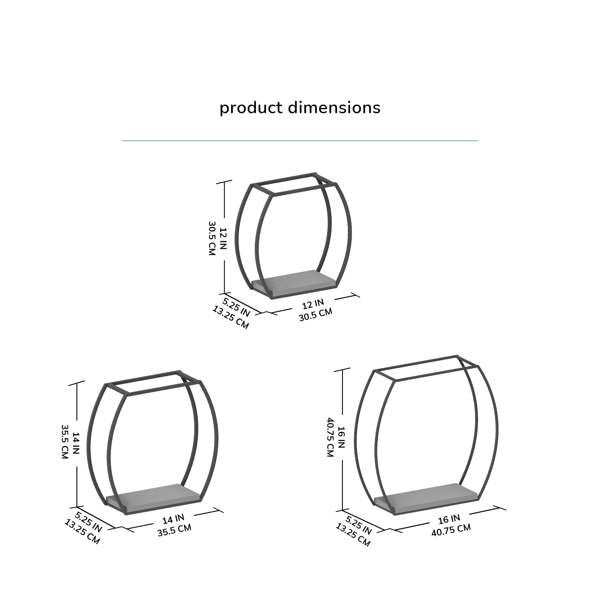 Our set of 3 shelves bring contemporary looks and space-saving design together. Crafted using premium electroplated metal and kiln-dried solid wood, it features sleek, truncated-shaped frames paired with sturdy planks. Arrange the shelves together as a set or hang them separately – they are a perfect trio for displaying plants, books, or decor objects.