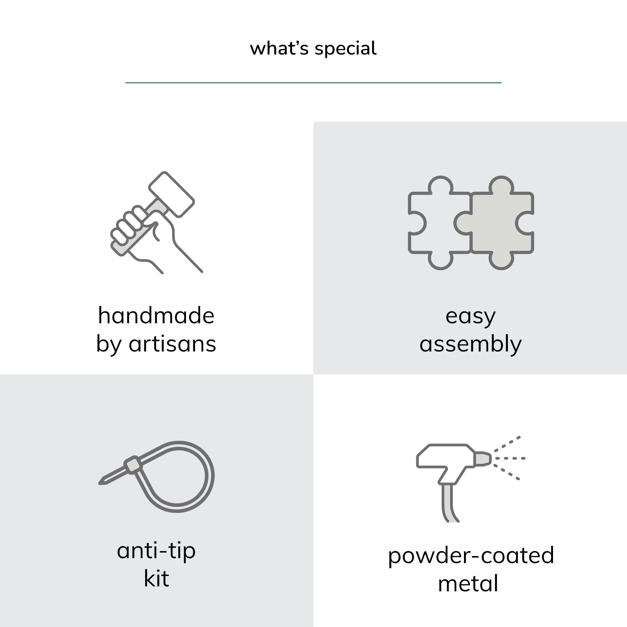 Infusing Scandinavian and industrial elements, this piece is here to make a statement. Note the clean lines and sleek metal legs. So chic. Handmade by artisans using kiln-dried solid wood, it features stunning wood grain patterns. Tuck your things inside the spacious drawers to keep clutter at bay - the perfect storage solution.