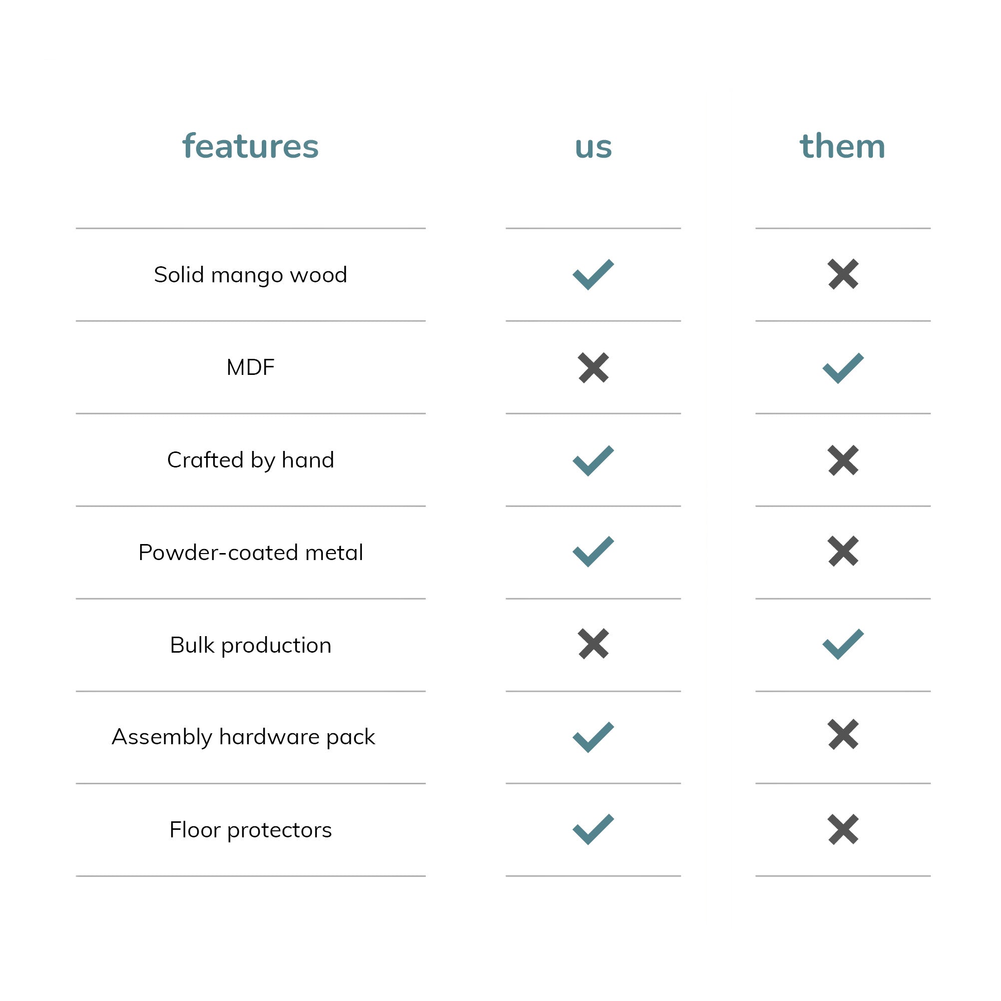 • Made from solid mango wood that features natural grains and variations