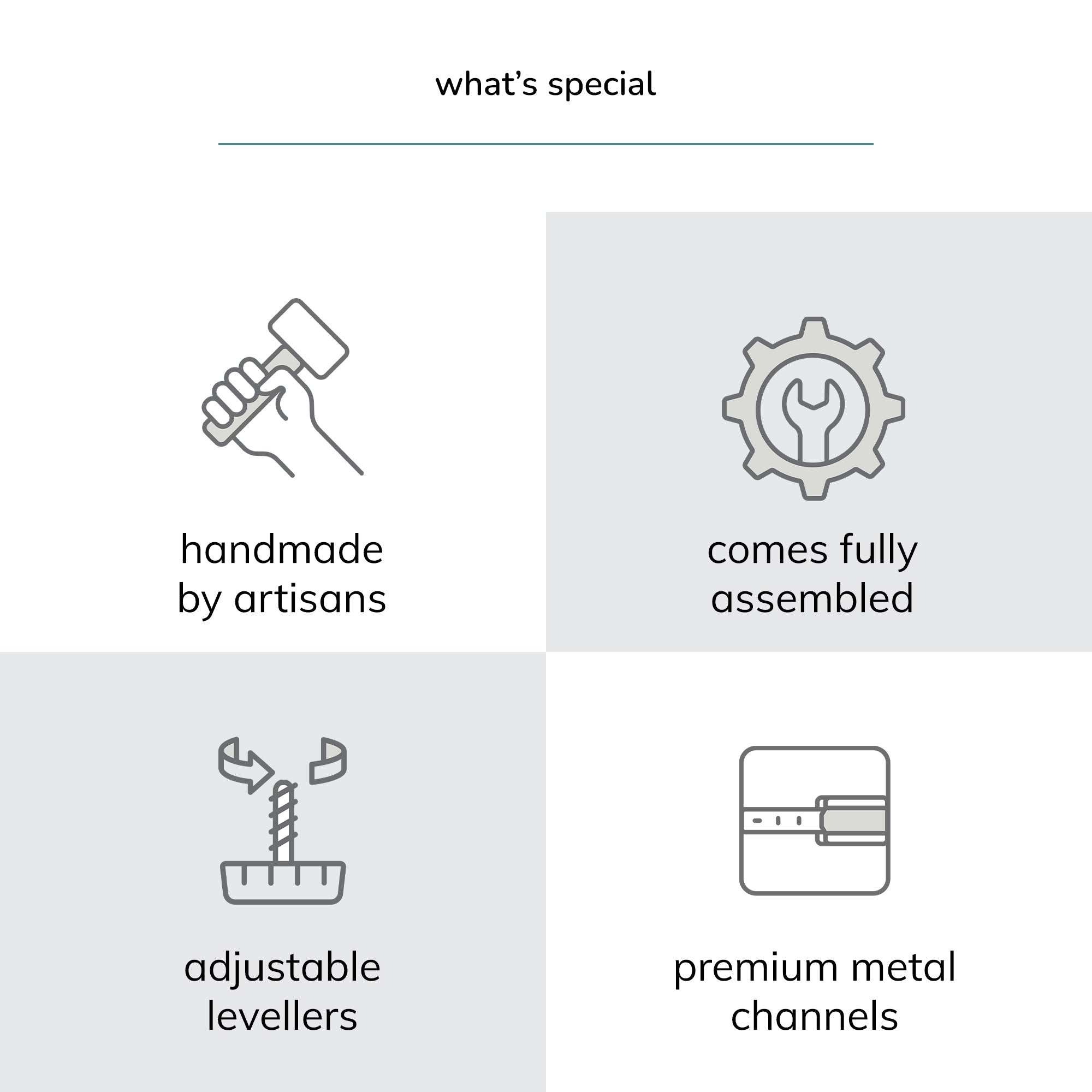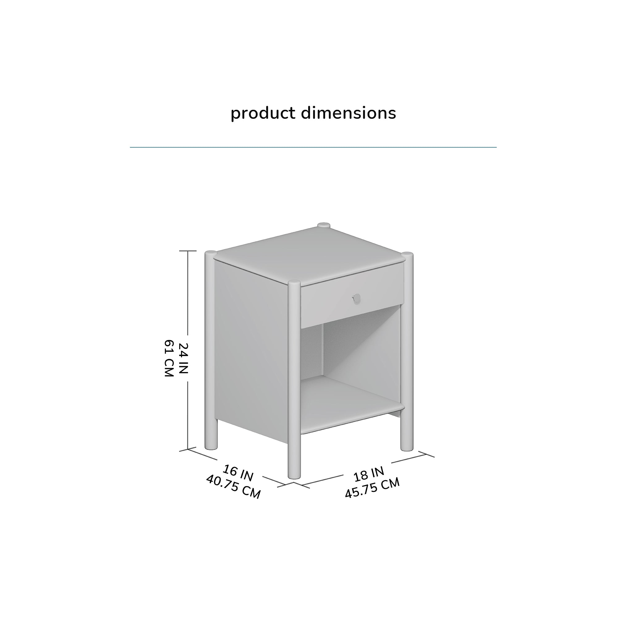 Minimal design, maximised storage & small-space friendly, this nightstand blends form and functionality. Crafted of solid wood, it features sturdy pillar legs and rounded edges all over. The spacious drawer with a casted knob & an open shelf offers you plenty of room for your night-time essentials. Comes fully assembled so all you have to do is unbox & style.