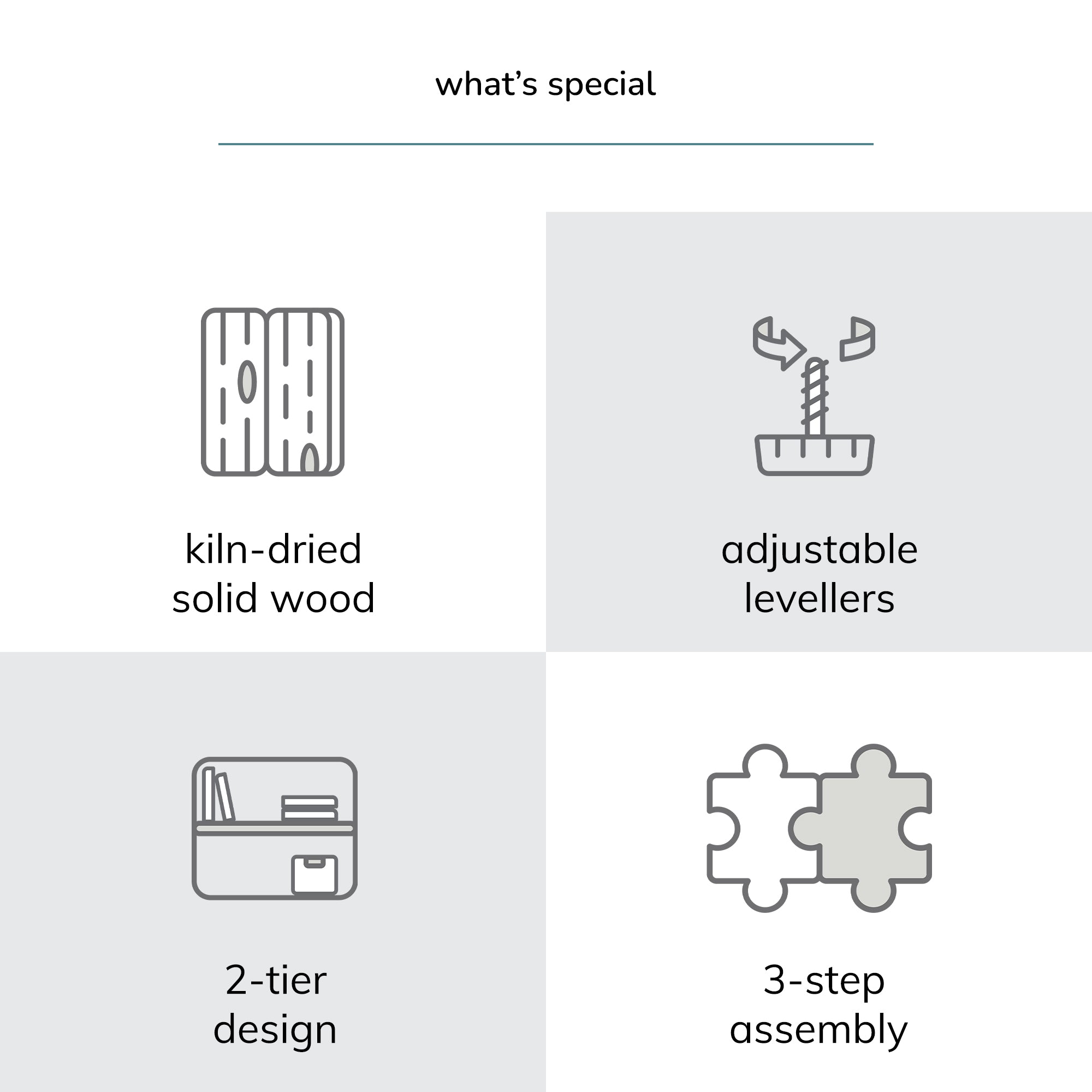 A blend of form and function – meet our solid wood nightstand (can also be a side table). Inspired from Parsons-style featuring a simple form & visible joinery, the rounded rectangular legs intersect with the top, perfectly fitting into each other, & hence striking a minimal modern silhouette. Fits within your bedroom or living room decor, this two-tiered piece is functional, good looking and perfect to showcase your favourite decor & perch your go-to’s.