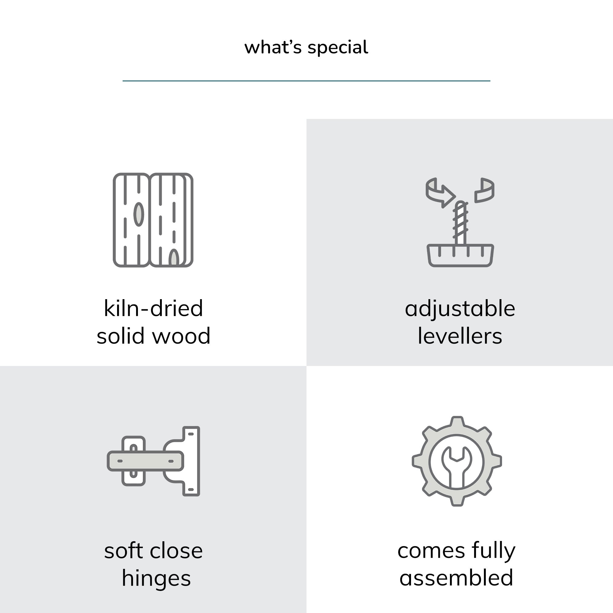 Stylish storage sidekick, this piece boasts modern minimal silhoutte. Crafted using solid wood it offers spacious cupboards to stash everything from your books to crockery and top space to display your favorite decor! Inspired from Parson’s style, it features rectangular legs intersecting at the top surface, fitting gracefully into each other. What more? It comes with soft close doors and handles for a smooth opening and closure!