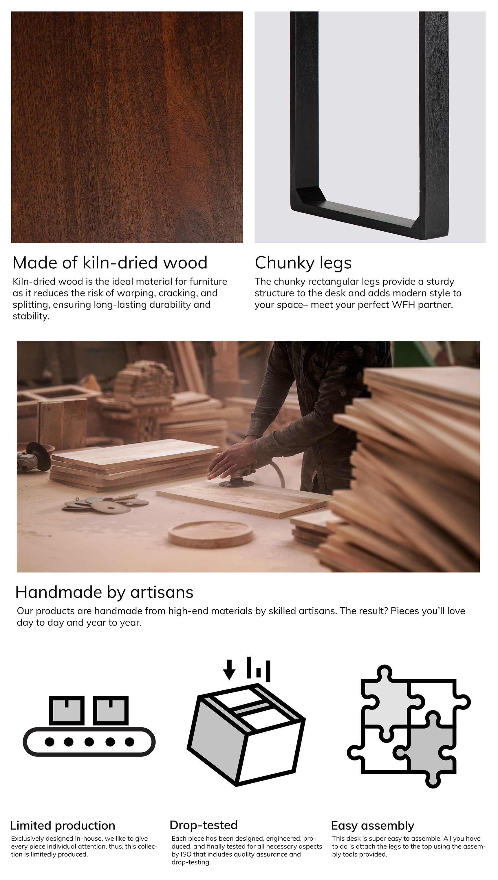 Handcrafted using solid mango wood, its natural knots and grains lend warmth and texture to its shape. The contrasting top and legs make for a stunning sight. Catching up on those emails just got super stylish!
