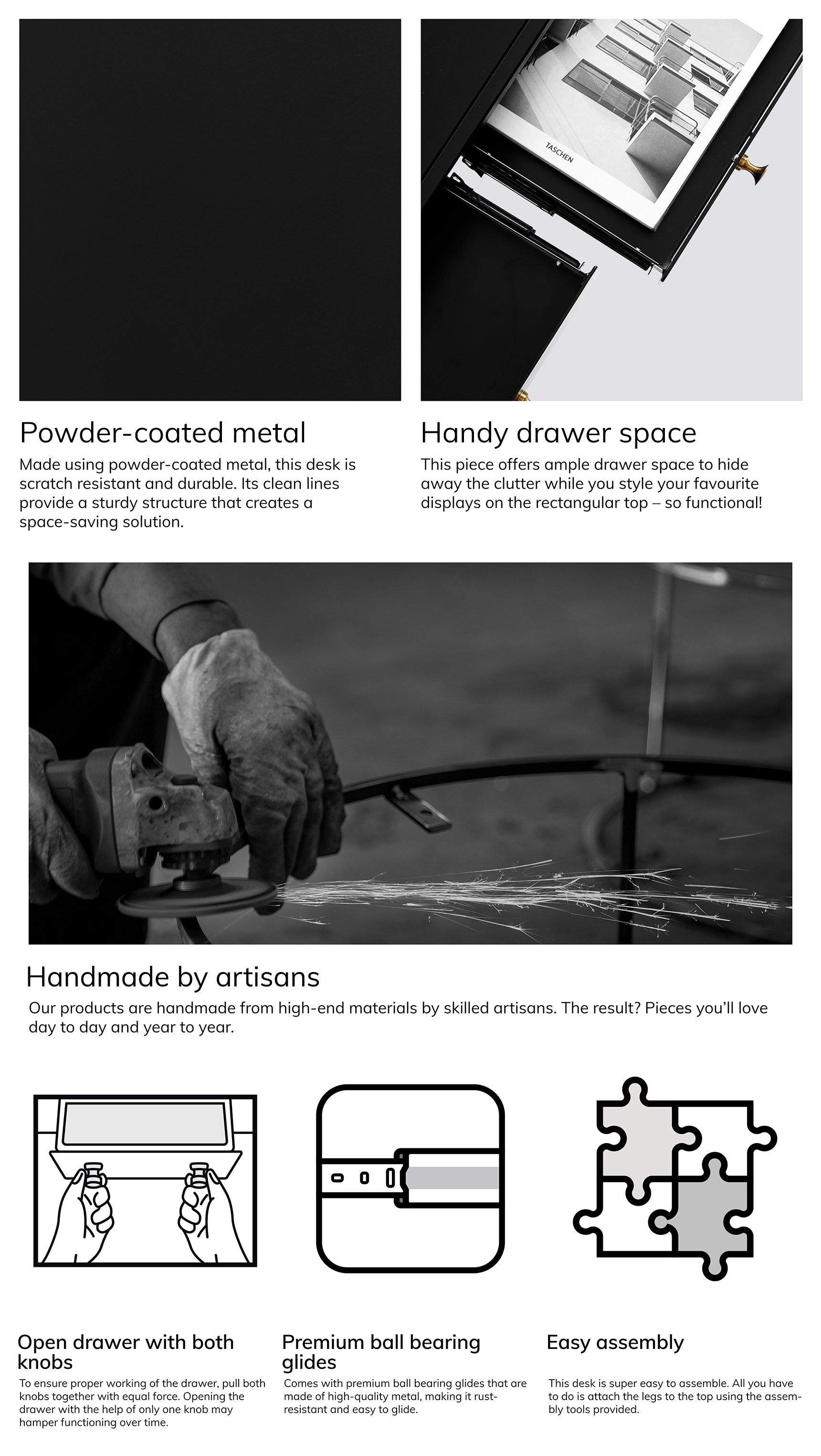 With plenty of space to work with and roomy drawers for your mess, this desk has WFH sorted. We’re all for clean, modern designs, and this piece delivers. The minimalist rectangular metal top and sleek legs demand attention without dominating your room. And oh, those gold coated knobs? So statement.