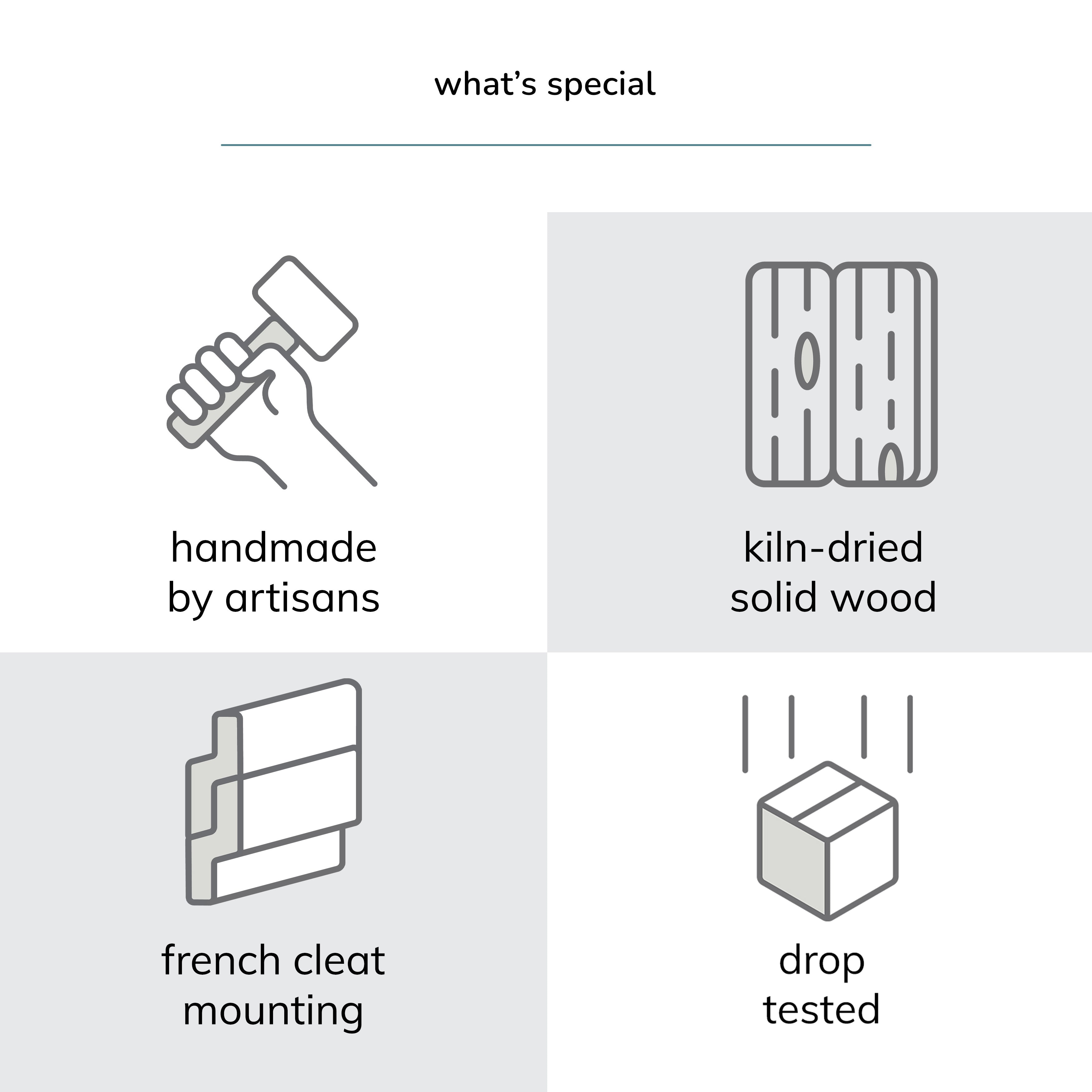 - French cleat for mounting.