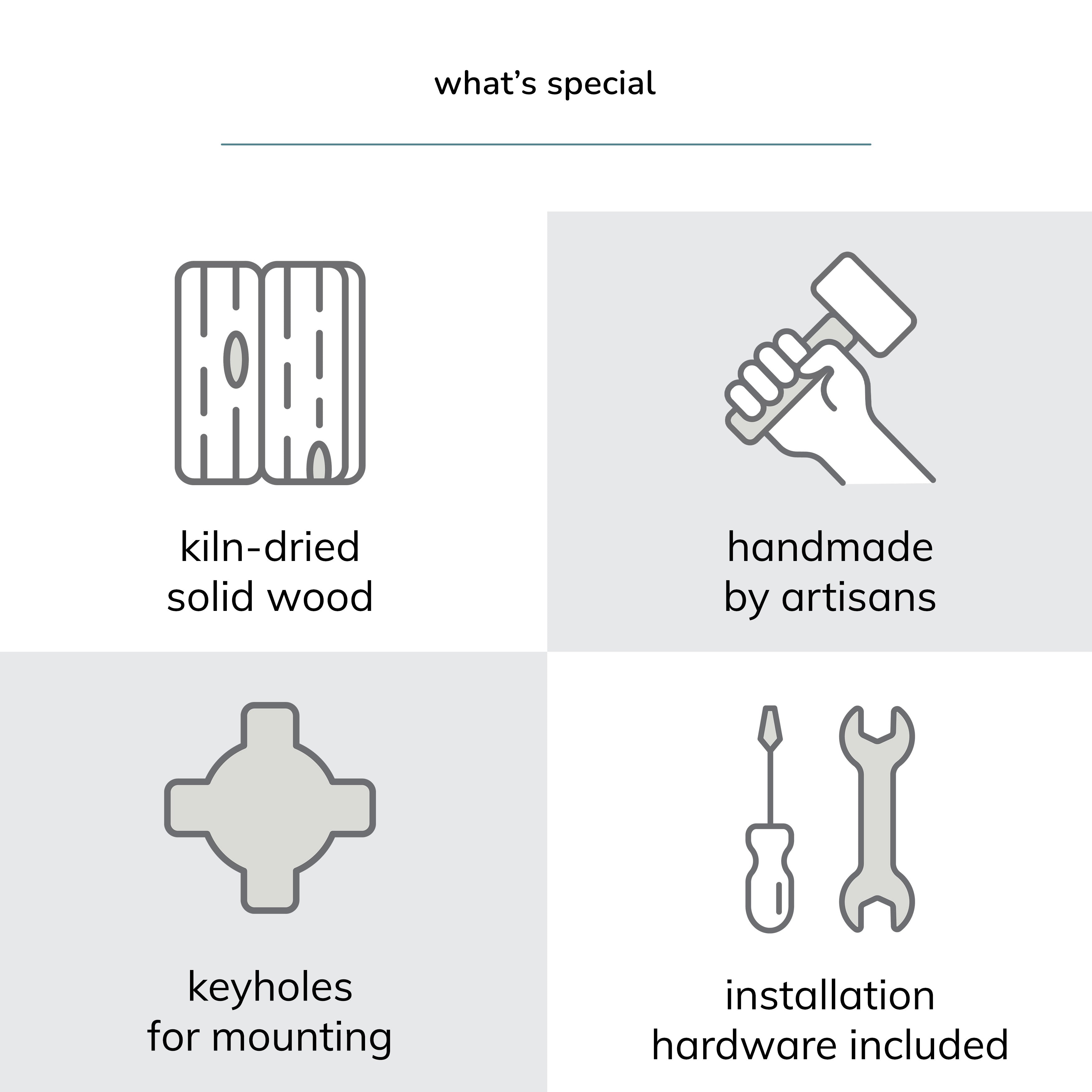 Compact, sleek design and handmade quality- meet this shelf. Kiln dried solid wood, Nordic design and hassle-free mounting, it is a perfect piece to upgrade your walls. Note the stunning ledge-like plank. Sturdy construction lets you place every top display of yours and it’s even better at showing them off!
