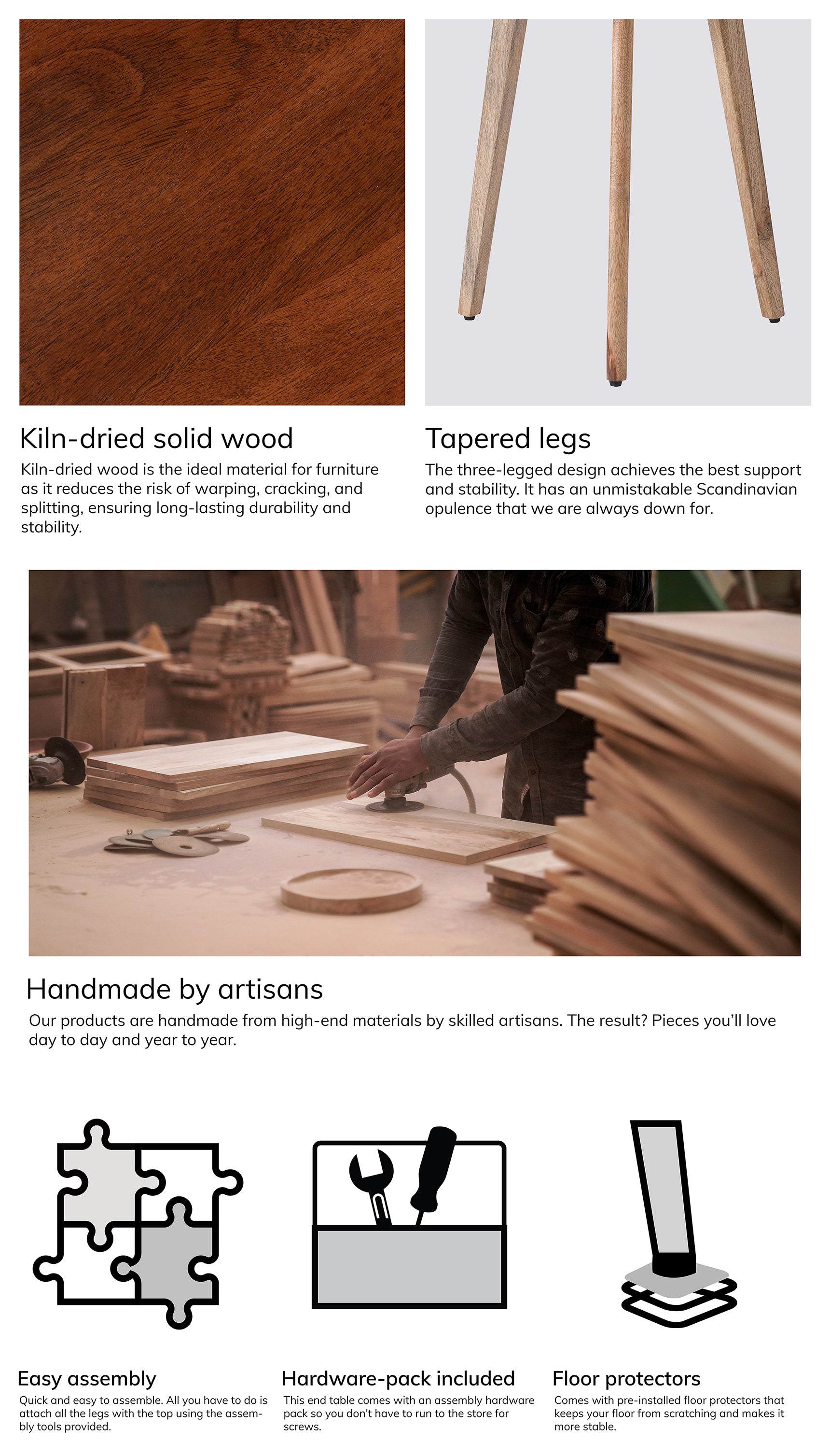 Handcrafted of solid mango wood, this side table celebrates nature’s beauty in a mid-century modern silhouette. Its natural variations in wood grains make a real statement- simply add your favourite books and lamps into the mix, and you will create a focal point in any room. With rounded edges, tapered legs, and a natural finish, it has an unmistakable Scandinavian opulence that we are always down for. Good-looking and useful, your guests might just want to steal the look!
