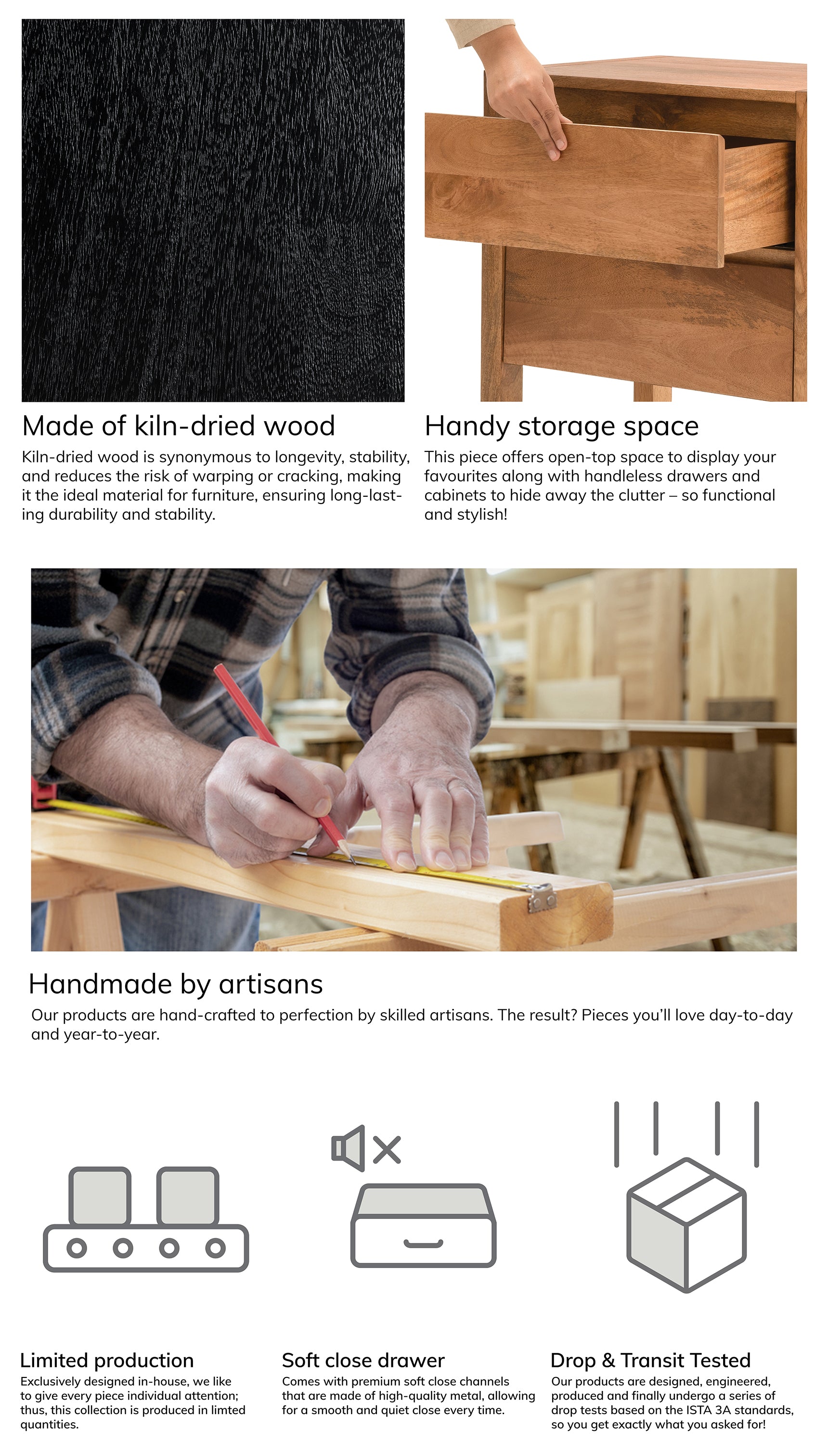 • Made using Kiln-dried solid wood.