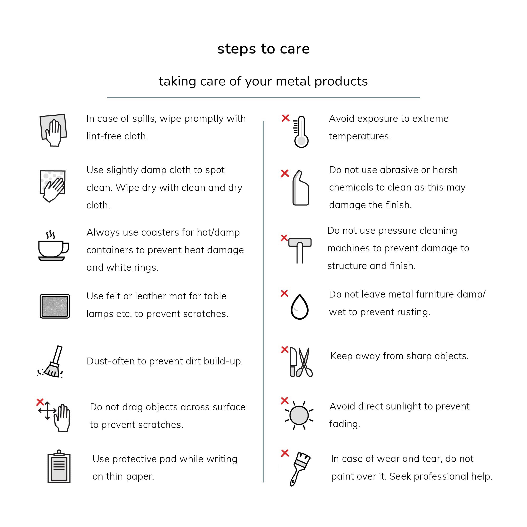 • Made using powder-coated metal.